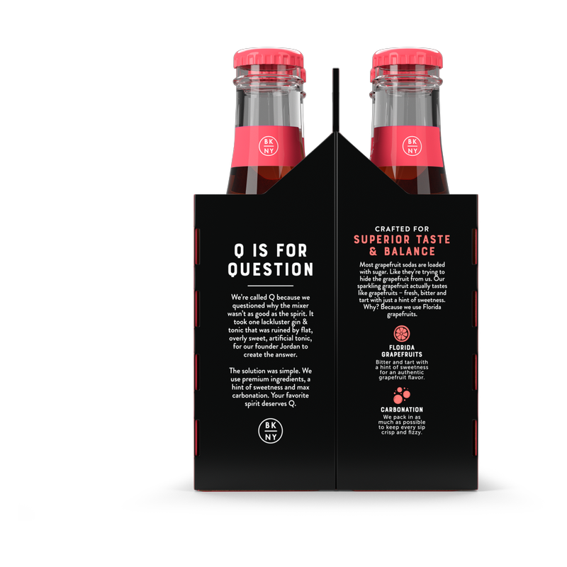 Q Mixers Grapefruit exists for one reason: to make your Paloma spectacular. A mixer, not a soda, Q Mixers Grapefruit is fresh, bitter, and very tart. Our secret? Grapefruits. There is nothing else like it. Mix it with tequila, or vodka if you prefer. Add a squeeze of lime. Spectacular.