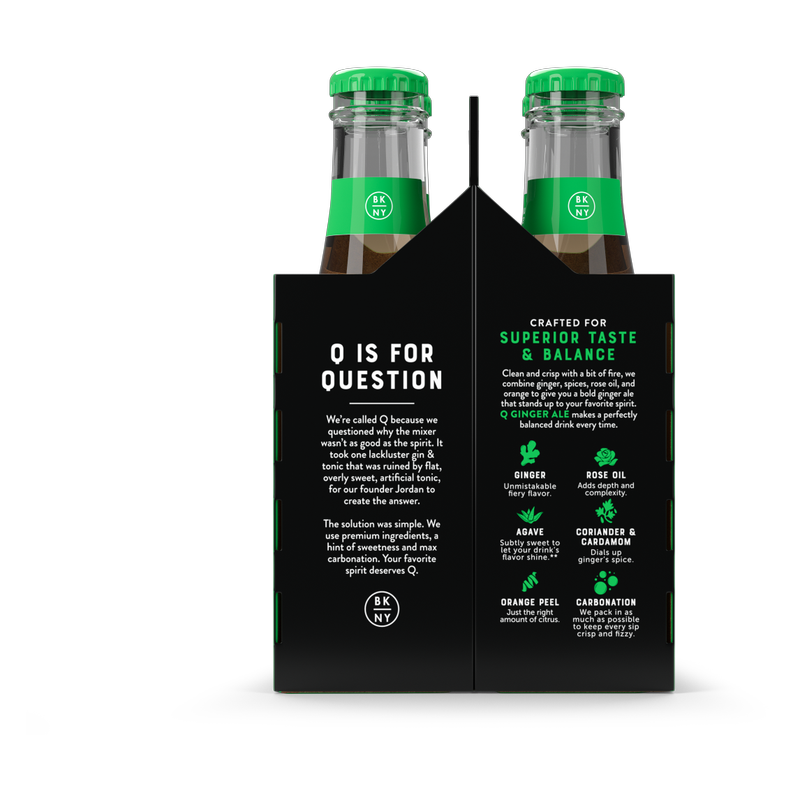 One hundred years ago, bottlers measured their worth by their ginger ale. Q Ginger Ale is their manifesto. Not too sweet. Clean and crisp with a gingery bite! 6.7 oz 4pkb