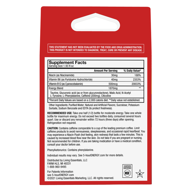It was the first 5-hour ENERGY® flavor, and still one of the most popular. Boasting an effective blend of B-vitamins, nutrients and caffeine, Berry 5-hour ENERGY® started it all in 2004. Want a great pick-me-up? Go retro and order this classic today.
