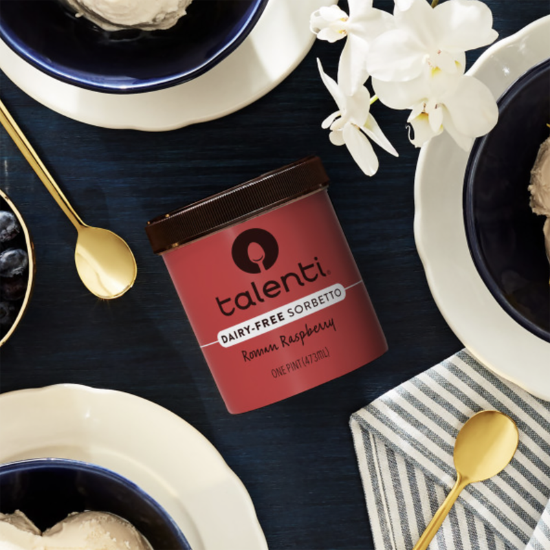 Sweet, tangy and refreshing. Talenti Roman Raspberry Sorbetto is made with real raspberries and a hint of lemon. It's also fat-free, dairy-free, gluten-free, vegan, kosher and verified non-GMO. So do as the Romans do and finish the entire pint.