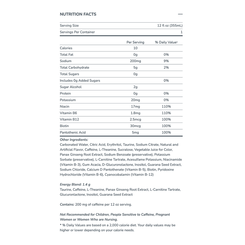 Rethink your energy drink. Alani Nu packs each can with 200mg of caffeine with vitamins B5, B6 and B12 to support functional systems in our bodies and provide natural energy. Biotin is added to provide a natural glow and steady boost of energy all day long. Alani Nu Energy is packed with nutrients you need and none of the fillers you don't