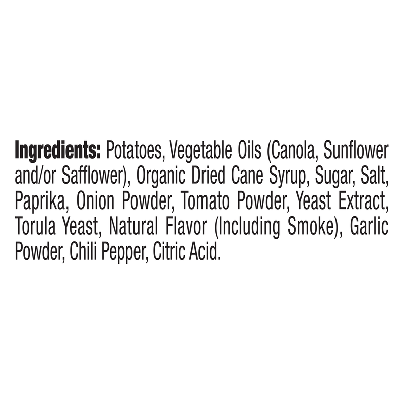 Kettle Brand Backyard Barbeque kettle chips start with a search for undisputed potato excellence. Determined not to disrupt the flawless, spudsy goodness, these beauties are cooked, skin on, one small batch at a time and flavored to perfection. Everyone loves the taste of Kettle Backyard Barbeque Chips – smoky, spicy, tangy, and sweet. These potato chips capture the vibe of a summertime barbeque, then throw in a hearty crunch that takes them over the top. When you open a bag of our Kettle Brand potato chips, you know you're getting incredible-tasting kettle chips made with authentic recipes by real people. From their farms to our kitchens and then to your home, the time and attention every Kettle Brand worker puts into their products is care you can trust. All that, plus Kettle Brand chips deliver a delicious snack that’s non-GMO Project Verified, and Certified Gluten-Free. This 8.5-ounce bag of chips is perfect for sharing at parties, picnics, or just snacking on the couch. Kettle Brand potato chips. Extra in a good way.