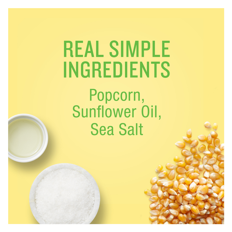Long ingredient list? Not here. Our Sea Salt Popcorn contains just popcorn, sea salt, and a little bit of sunflower oil (got to get the corn to pop, after all). Non-GMO