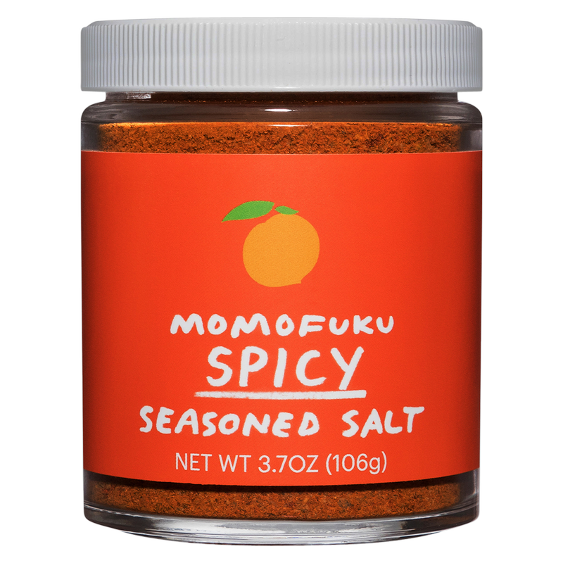 Momofuku Spicy Seasoned salt is a flash of heat for your palate. It blends our Savory base with gochugaru, cayenne pepper, and dried chilies. We use it on shrimp, stewed meats, and ripe mango. No more sad, bland salts for your table - Spicy Seasoned salt is the answer.