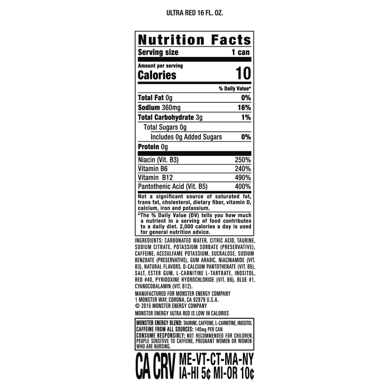 Monster Energy Ultra Red 16oz Can