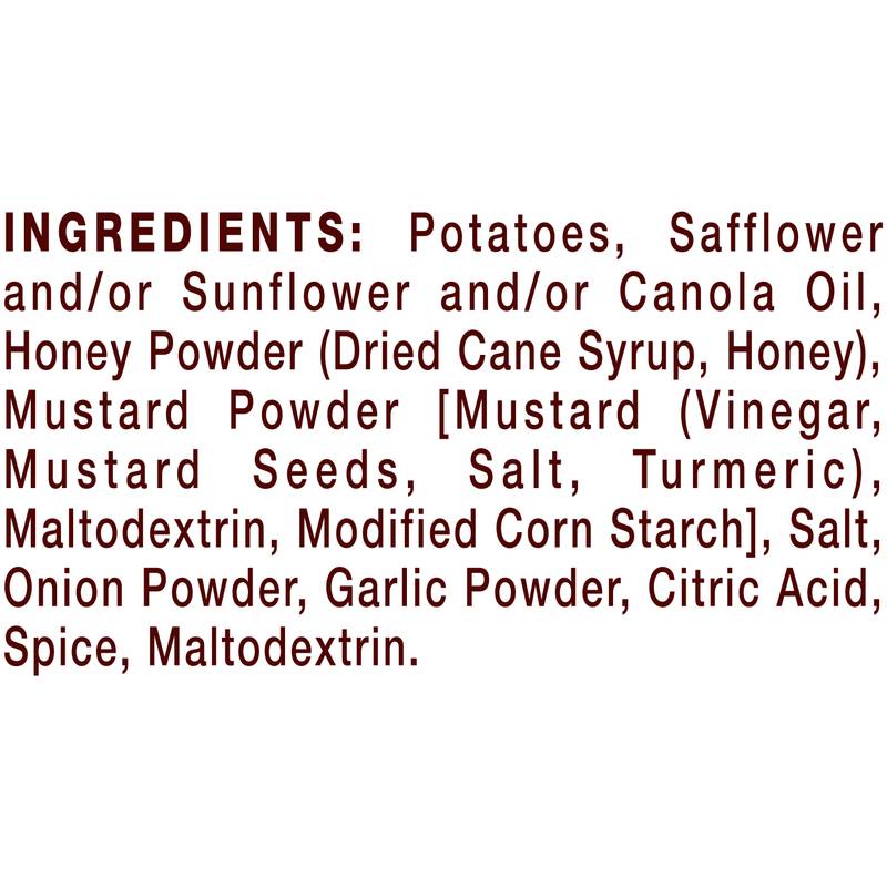 Kettle Brand Honey Dijon kettle chips start with a search for undisputed potao excellence. Determined not to disrupt the flawless, spudsy goodness, these beauties are kettle cooked, skin on, one small batch at a time. Try the incredible sweet and savory flavor and you just might fall in love. Dijon mustard is tangy, sophisticated, and just a little bit snooty. Honey is smooth, sweet, and more than a little wild. Together, they’re a match made in heaven. When you open a bag of our Kettle Brand potato chips, you know you're getting incredible kettle chips made with authentic recipes by real people. From their farms to our kitchens and then to your home, the time and attention every Kettle Brand worker puts into their products is care you can trust. All that, plus Kettle Brand chips deliver a delicious snack that’s non-GMO Project Verified, and Certified Gluten-Free. These 2-ounce snack bags of kettle chips are great at home or on-the-go. Kettle Brand potato chips. Extra in a good way.
