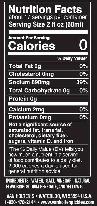 Real honest pickle brine from Van Holten's 100 year old recipe. Serve as a shot chaser or a drink mixer. Bloody Mary's anyone?!