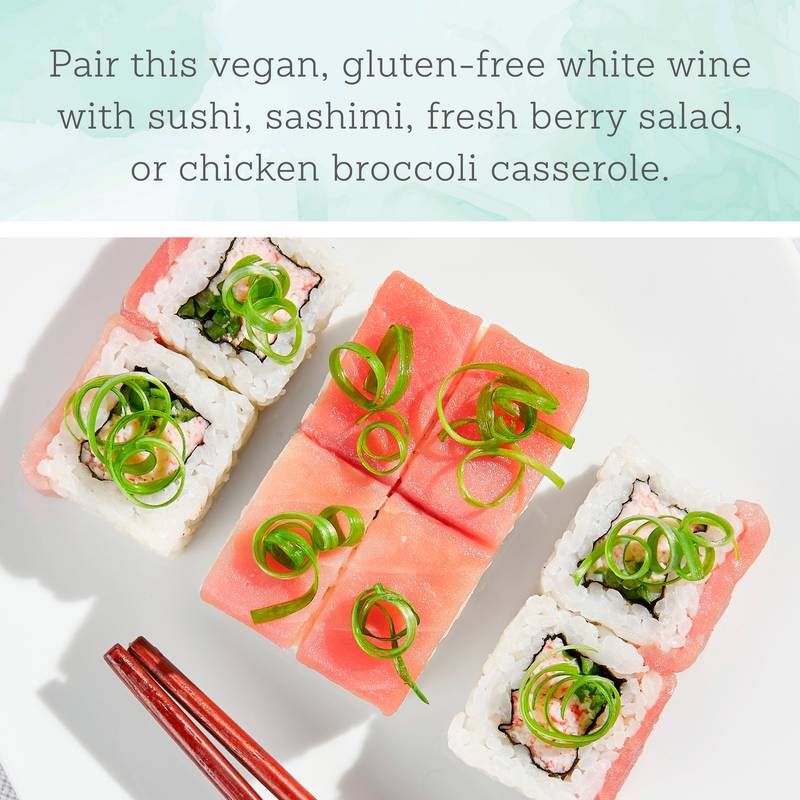 Mind & Body Pinot Grigio is a crisp white wine with lower alcohol content and fewer calories made using traditional wine making methods. Light, crisp and refreshing, this dry white wine bursts with tropical fruit flavors and aromas. Delicate floral notes mingle with ripe pear, peach and melon on the nose, leading to bright citrus, white peach and tropical fruit flavors and a refreshing finish. This vegan wine received 90 Points from Tasting Panel Magazine. A wine that can easily be enjoyed on its own or with a variety of dishes, try pairing this California white wine with sushi, sashimi, fresh berry salad and chicken broccoli casserole. It's made with grapes from premium California vineyards. The dry wine is cold fermented and aged in stainless steel tanks to retain its crisp acidity. After the initial wine making process is complete, a small amount of finished wine is separated and passed through a state-of-the-art spinning cone machine that gently removes the alcohol while preserving the wine’s crisp flavors and floral aromas. This alcohol-removed wine is then blended back into the traditional wine resulting in a final blend of delicious, reduced-alcohol Pinot Grigio wine with 30% fewer calories and half the sugar of the original wine. Mind & Body Pinot Grigio is also gluten free, vegan and made with no added sugar. This bottled wine has 8.6% alcohol by volume. Mind & Body wines are dedicated to empowering you to live your best life. These premium, low calorie, low alcohol wines are carefully crafted to deliver a delicious wine experience that complements your mindful, wellness-focused lifestyle.