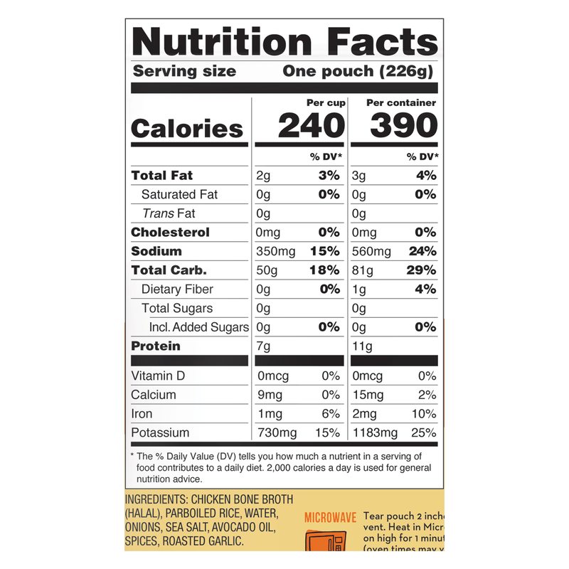 7g of collagen rich protein per serving, cooked in rich and flavorful bone broth