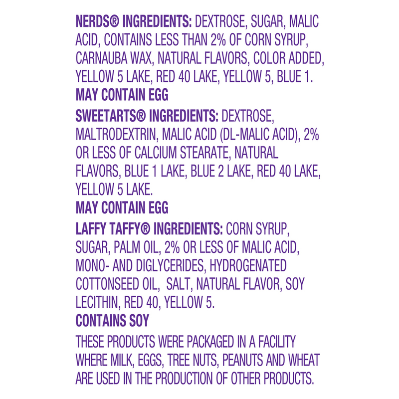 12 plastic eggs, including one prize Golden Egg, are filled with Willy Wonka's favorite brands - Nerds, SweeTARTS and Laffy Taffy. Perfect for your egg hunt!