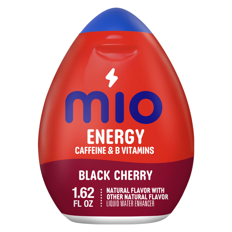 About 18 servings of MiO Energy Black Cherry with Caffeine. Give water a boost of caffeine and B vitamins. Delivers refreshing flavor in every squeeze. Transforms water with a bold black cherry taste. Delivers 60 mg of caffeine per squeeze (1/2 tsp). Comes in a portable bottle for on-the-go refreshment.