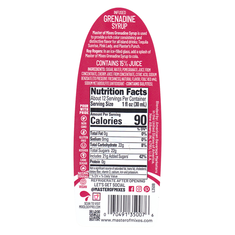 Master of Mixes Cocktail Essentials Grenadine 375mL Btl