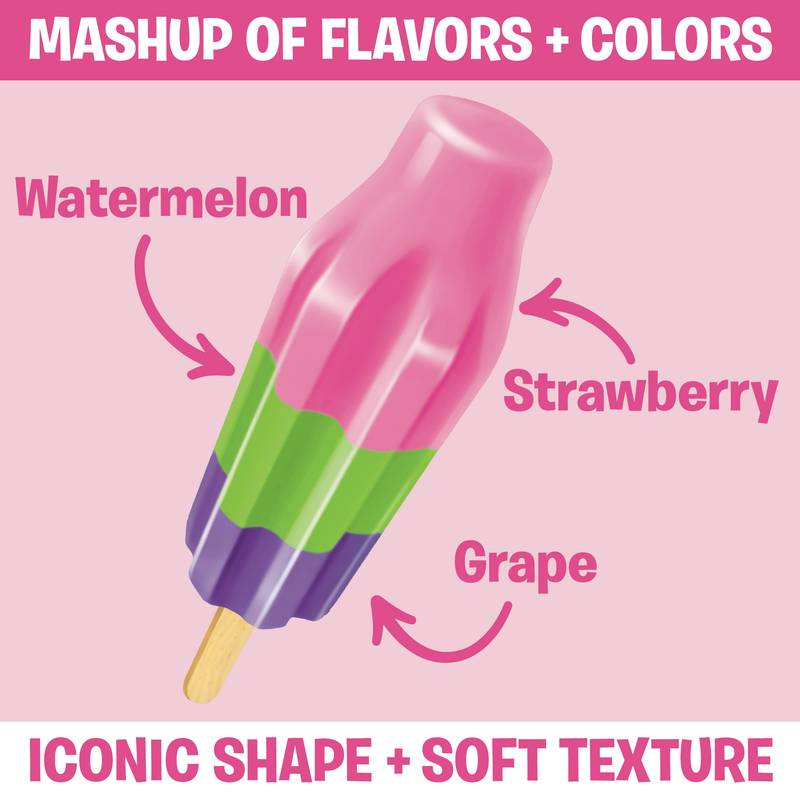 Your favorite frozen treat, meet your favorite candy. Introducing Bomb Pop NERDS Ice Pop! Experience the mash-up of classic NERDS candy flavors including tart strawberry, sweet watermelon, and tangy grape all on one stick. Talk about an epic collab! This frozen treat is presented in the iconic Bomb Pop rocket shape, with the soft-bite texture you know and love. Perfect as a refreshing sweet treat on a hot day or as a tasty reminder of summer fun. These ice pops are also a great frozen dessert after school, on-the-go or for a sweet pick-me-up anytime. With 12 individually-wrapped Bomb Pops per box, it’s easy to share this exciting flavor combination with family and friends! Plus, at only 40 calories per ice pop, you can indulge in this delightful treat guilt free and often! This iconic mashup of Bomb Pop and NERDS is one you'll have to taste to believe. Three flavors. One stick. The best things are not one thing.