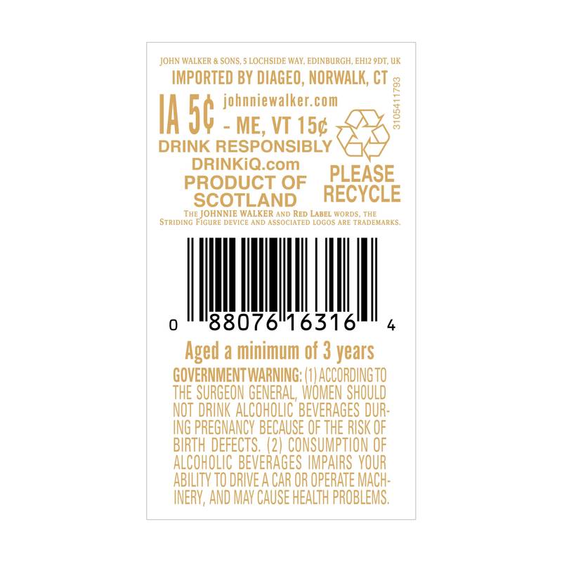 Unveil the bold and vibrant character of Johnnie Walker Red Label Blended Scotch Whisky, one of the world's best-selling Scotch Whiskies. Crafted with up to 35 whiskies, including icons like Cardhu, Caol Ila, Cameronbridge, and Teaninich, it delivers a symphony of flavors. Fresh apple and citrus dance with warming cinnamon and a touch of peppery spice, culminating in a smooth, smoky finish. This award-winning whisky is the perfect choice for those who enjoy whisky cocktails and long mixed drinks. For a Highball, simply fill a tall glass with ice, add your favorite mixer like ginger ale, and experience the smooth, refreshing taste. An ideal gift for any whisky lover and someone who appreciates delicious long mixed drinks. Includes one 80 proof 1.75L bottle of Red Label Blended Scotch Whisky. Please drink responsibly.