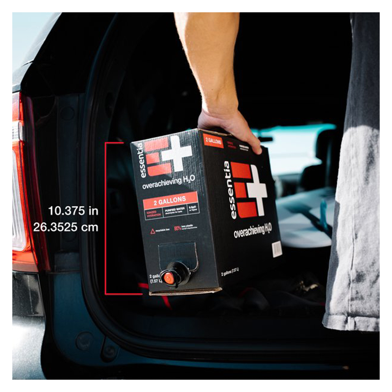 Essentia Water is Supercharged Ionized Alkaline Water so you can do the things that matter most to you and stop for nothing. Essentia’s proprietary three-step ionization process produces Overachieving H2O that’s 99.9% pure with a pH of 9.5 or higher and a clean, smooth taste. Step 1: Unwanted particles are removed through microfiltration and reverse osmosis, making Essentia 99.9% pure. Step 2: The water is infused with trace amounts of electrolytes; not just for taste, but to better complement the body’s natural mix. Step 3: Bitter-tasting acidic ions are removed, creating a high alkaline water with pH levels of 9.5 or higher. Made more sustainably, the Essentia Water 2 Gallon Box has 80% less plastic than eight 1L Essentia water bottles in a 100% recyclable box made of 100% recycled corrugate. The Essentia Water 2 Gallon Box is designed to fit in almost any fridge. And with an easy-grip handle, this boxed water is perfect for getaways, camping, sharing and more.