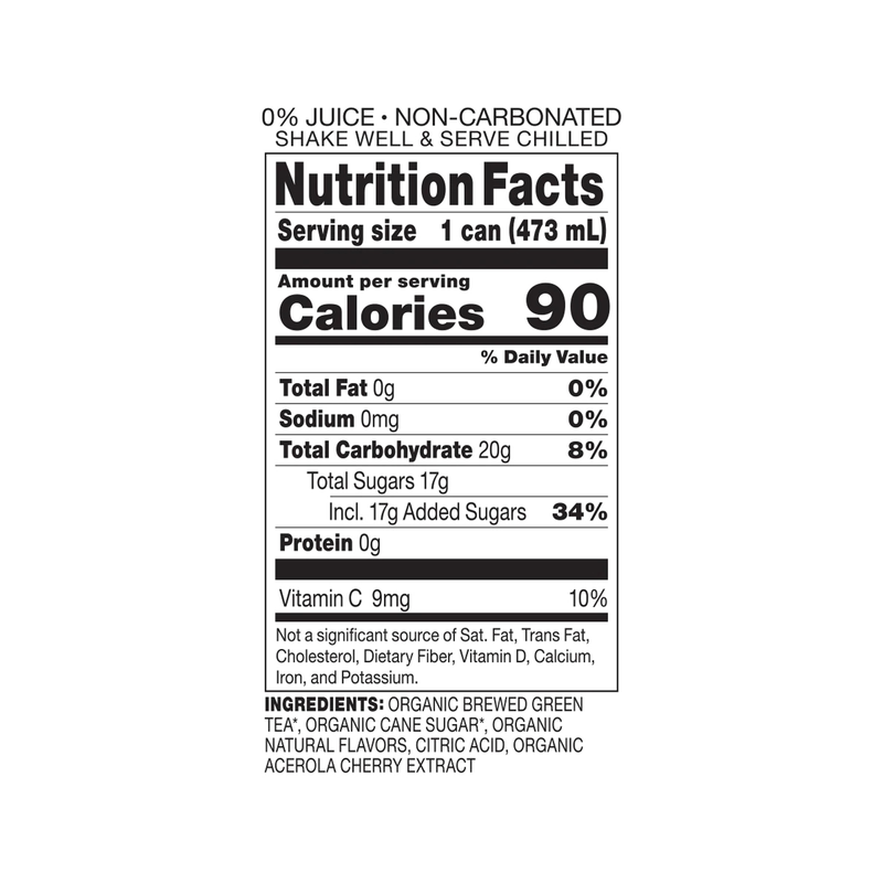 Brewed Green tea with natural berry flavors, sweetened with organic fair trade cane sugar, and combined with acerola superfruit. Contains antioxidant vitamin c* to create a delicious Antioxidant* Brew™.