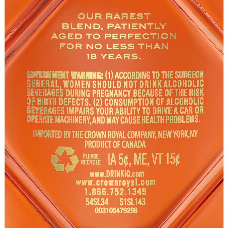 Taste a new pinnacle of luxury: Crown Royal Aged 18 Years Extra Rare Blended Canadian Whisky. Crown Royal Aged 18 Years is a rare blend of three of our most exceptional whiskies, handcrafted by our master blender, patiently aged to perfection for no less than 18 years.