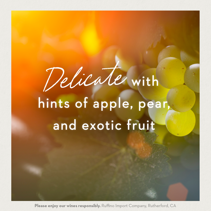 Ruffino Prosecco DOC Italian White Sparkling Wine is crisp, clean, and delicate with fine bubbles on the palate. Vibrant flavors of apples and peaches lead to a pleasant finish.