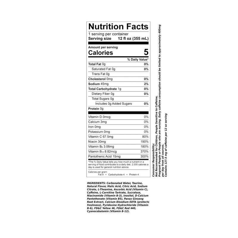 - B-vitamins, Taurine & Caffeine for long-lasting energy