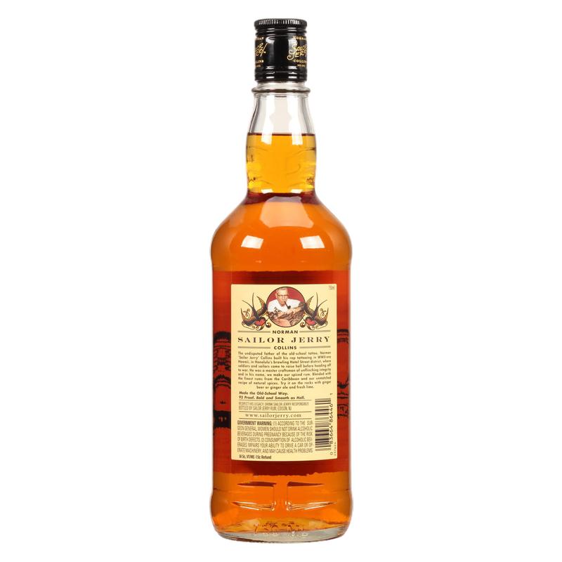 Sailor Jerry Spiced Rum uses all-natural spices and flavors giving a rich, smooth taste characterized by top notes of vanilla and cinnamon. It was created in honor of Norman “Sailor Jerry” Collins, father of the old school tattoo and a true independent spirit. Respect his legacy, drink responsibly.
