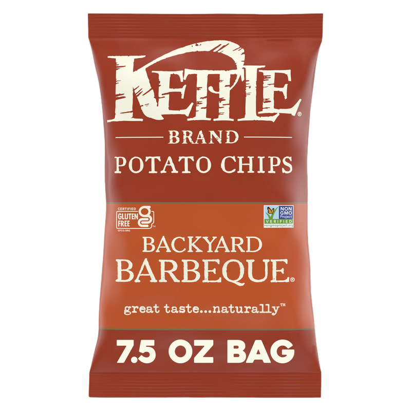 Give your taste buds bold summertime flavor with Kettle Brand Backyard Barbeque Kettle Potato Chips. These kettle cooked BBQ chips have a taste everyone loves – smoky, spicy, tangy and sweet. They’re extra saucy with a flavor that perfectly captures the vibe of a summertime barbeque. Cut perfectly from whole potatoes, our BBQ kettle chips deliver the delightful crunch you crave. All of our kettle cooked chips are Certified Gluten Free and Non-GMO. This 7.5-ounce bag contains about 8 servings of barbecue chips and is perfect for stashing in your pantry so you can satisfy your craving for bold or spicy snacks whenever it strikes. Enjoy these sweet and spicy chips on their own or as a side with sandwiches, burgers and more. When you open a bag of Kettle Brand chips, you know you're getting incredible kettle cooked potato chips made with authentic recipes by real people. In addition to Backyard Barbeque, Kettle Brand gluten free chips are available in a wide range of flavors including Honey Dijon, Farmstead Ranch and Jalapeno. No matter the recipe, every hearty bite of Kettle Brand chips is packed with irresistibly bold flavor.