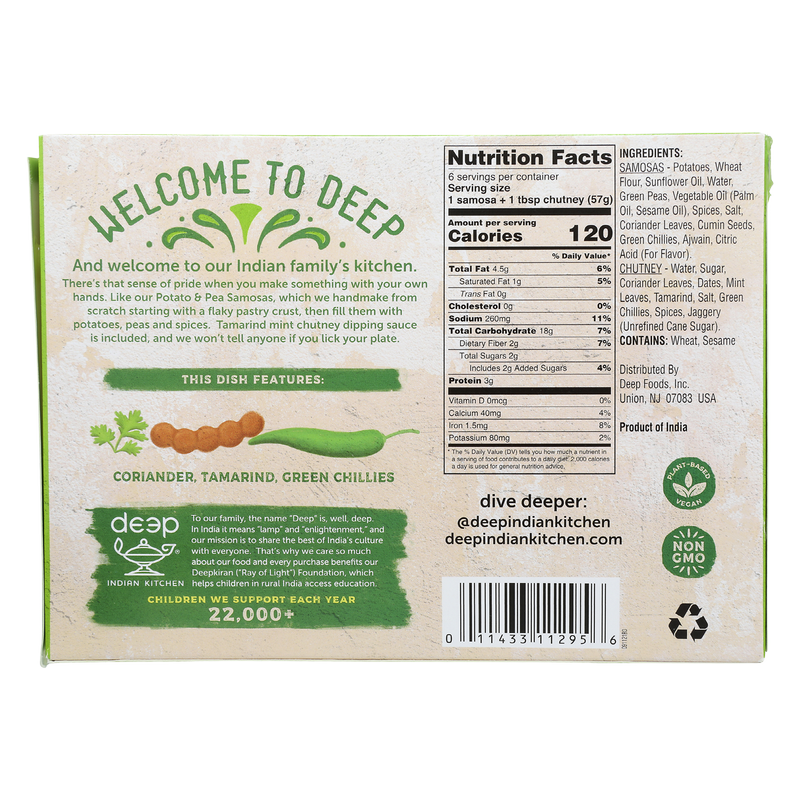 Deep Indian Kitchen Potato & Pea Samosas with Chutney 12 oz.