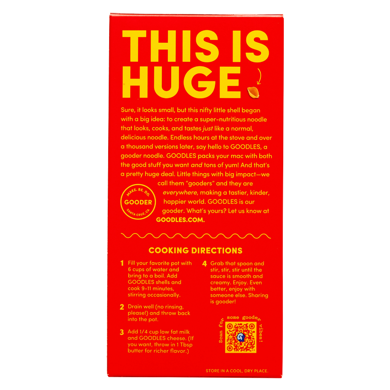 Shella Good is a tangy, aged white cheddar mac with shells that is sure to satisfy. GOODLES packs your mac with the good stuff you want and tons of yum!