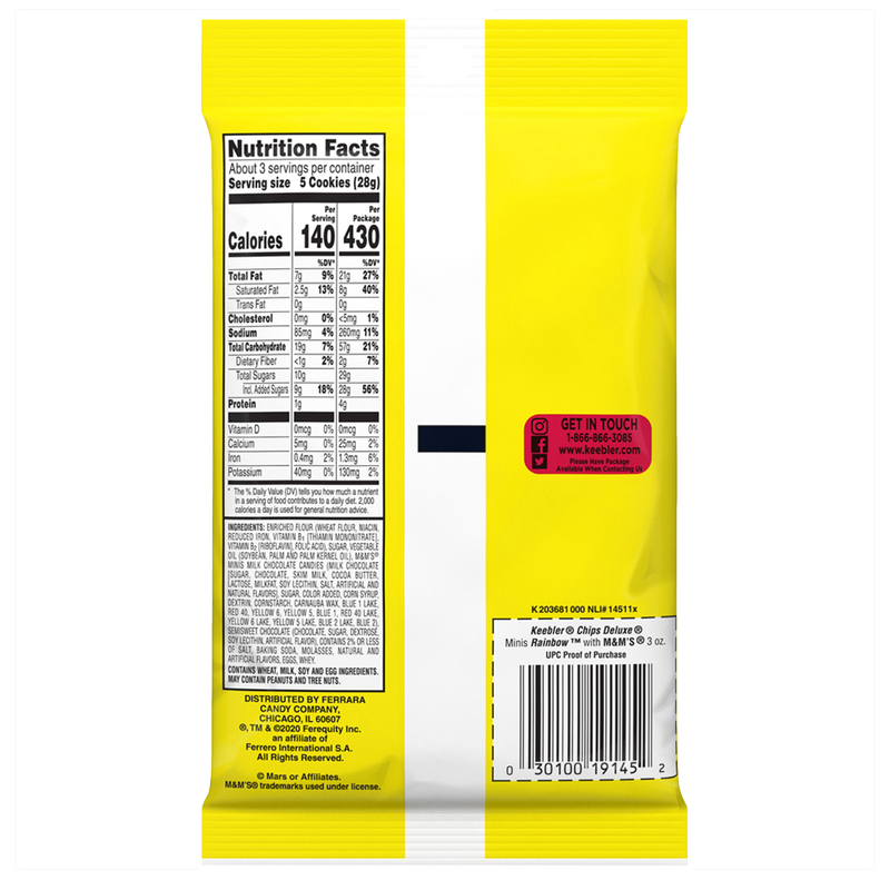 Keebler Chips Deluxe Cookies with Rainbow M&M Candies, 3 oz