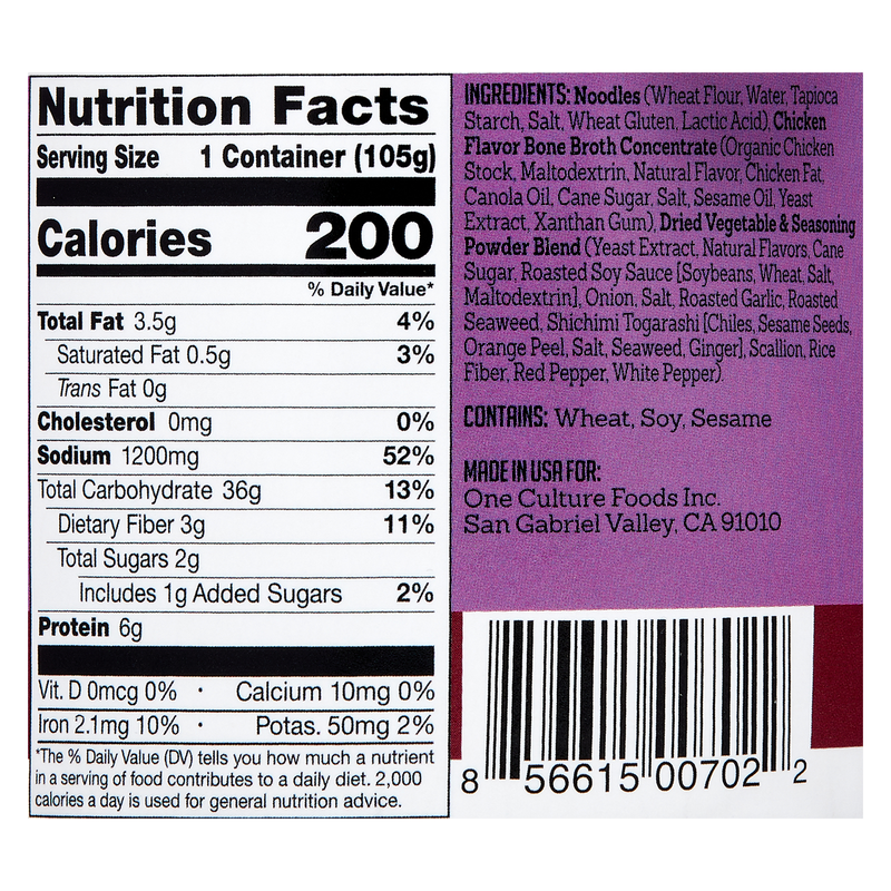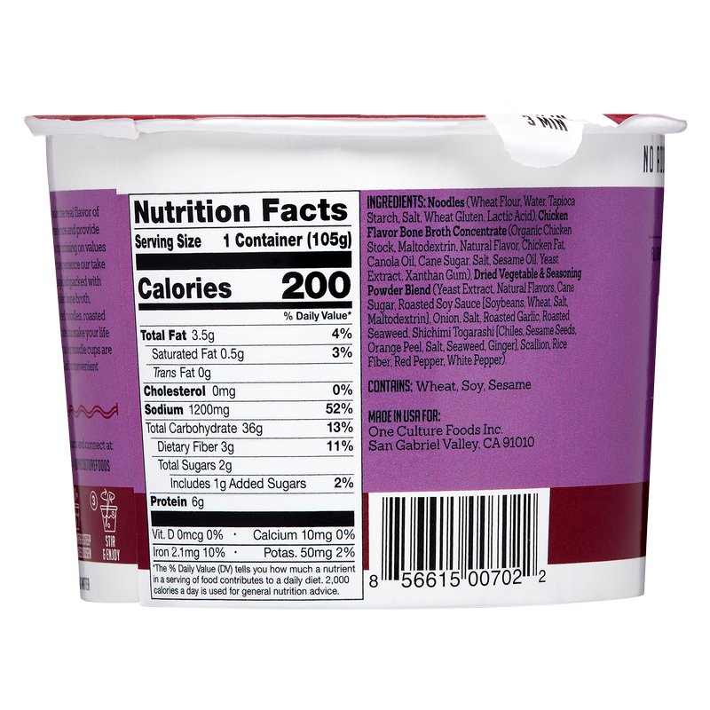 One Culture Japanese Spicy Ramen Noodle Cup 3.7oz
