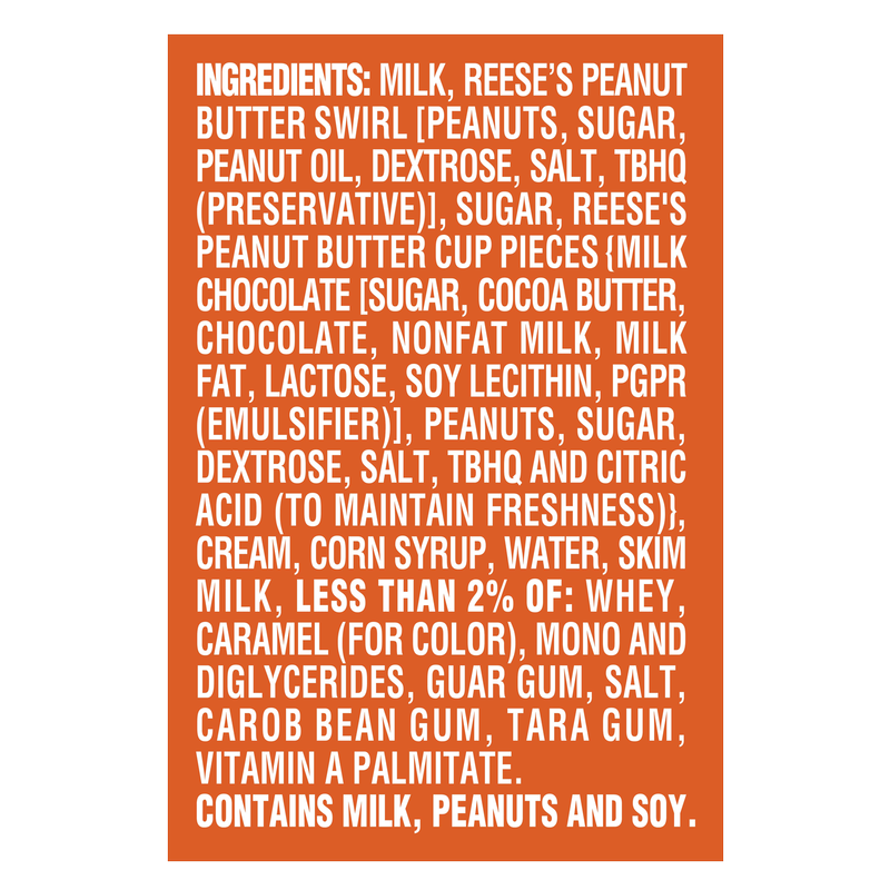 REESE'S ice cream is packed with sweet milk chocolate and peanut butter cups to please your palette and make all your peanut butter candy dreams come true. This frozen treat has chunks of REESE'S cups and swirls of peanut butter throughout a smooth peanut butter light ice cream base.