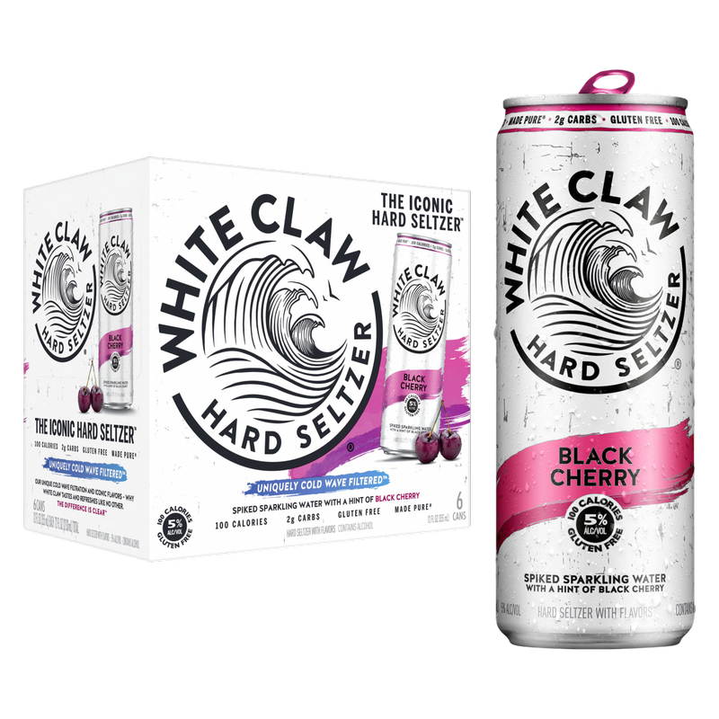 Discover a wave of pure, crisp taste refreshment with a 6-Pack of White Claw® Hard Seltzer Black Cherry. Crafted with quality ingredients, White Claw® Black Cherry is made from a blend of seltzer water, gluten-free alcohol, and a hint of Black Cherry. As our most popular flavor, Black Cherry seamlessly balances the tartness and sweetness of a ripe summer cherry. Each 12oz can contains 100 calories, 5% alcohol, and 2g of carbs, making it the perfect choice to share. Please drink responsibly. 21+.